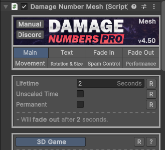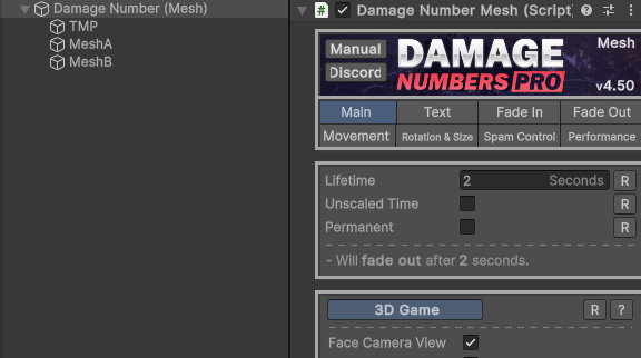 Damage Numbers ProはTextMeshProを使用しているので、3Dでも2DでもuGUIでも使うことができます。