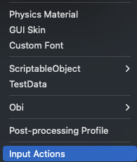 Input Systemが追加されていれば、Projectビューの右クリックメニューから