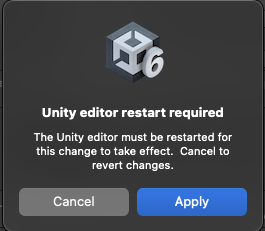 Input System Packageを選択するとEditorが再起動を求めるので再起動しましょう。