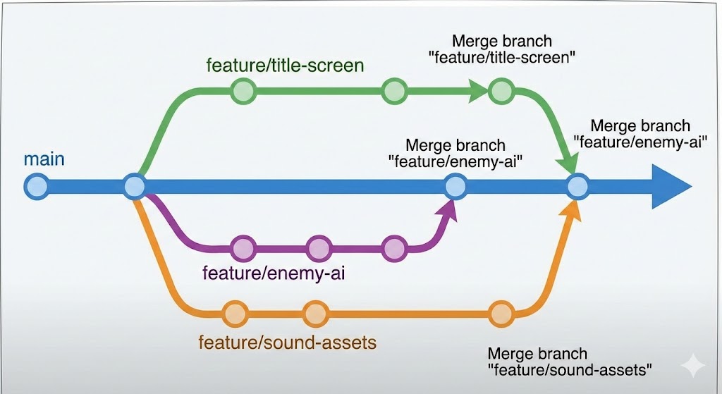 そんなときにmainとなるブランチから分岐し、平行して作業できる状態を作ることができます。