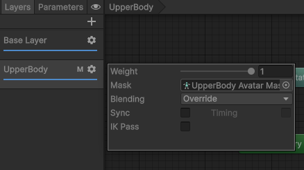 このAnimator Layerと、後述するAvatar Maskを組み合わせると、