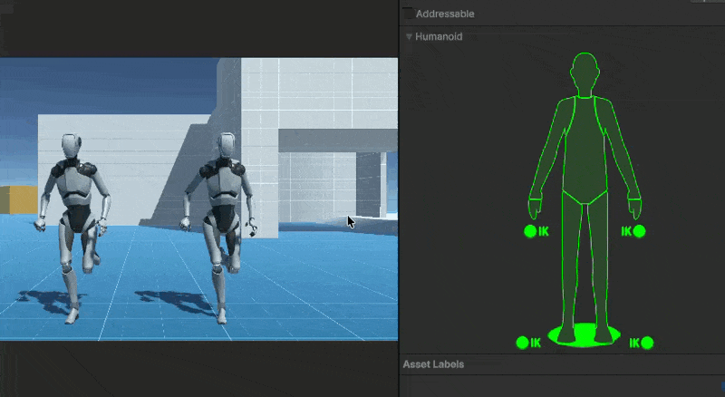 こうすることで、下半身の走りを維持したまま上半身だけ構えポーズに切り替える、といった制御が可能になります。