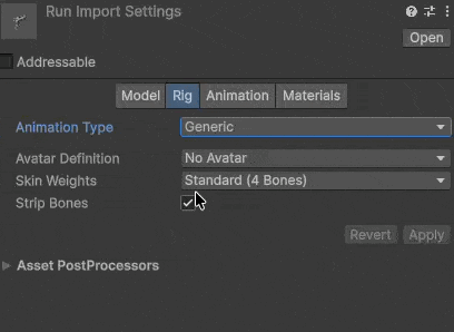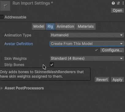 これでリターゲティングが有効になり、体型の異なるキャラクター間でアニメーションを使い回せるようになります。