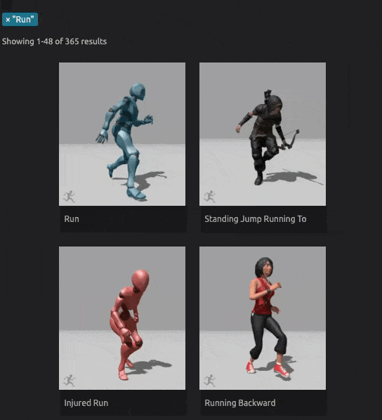 歩く・走る・ジャンプ・攻撃など数千種類のアニメーションが揃っていて、ダウンロードすればすぐにUnityで使えます。